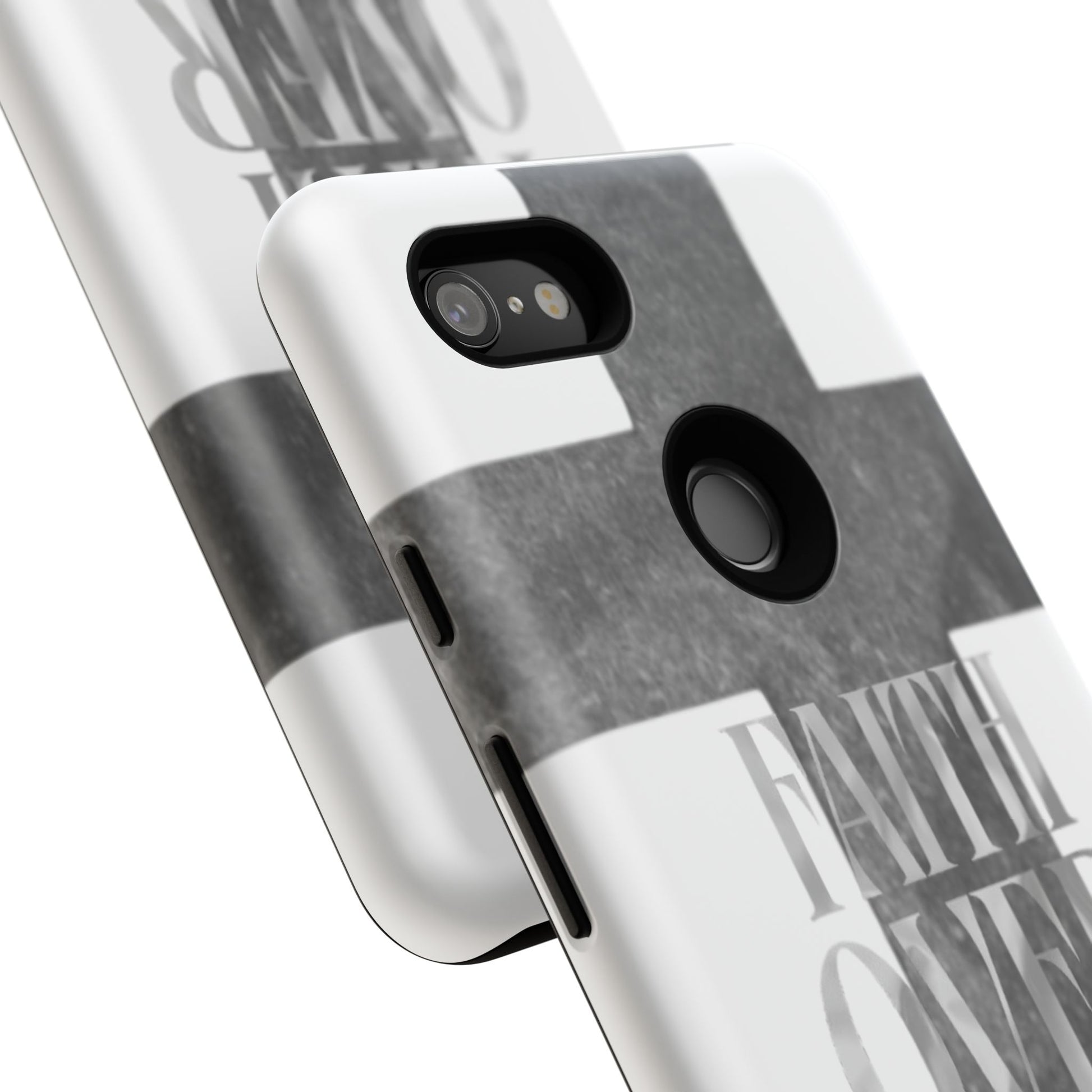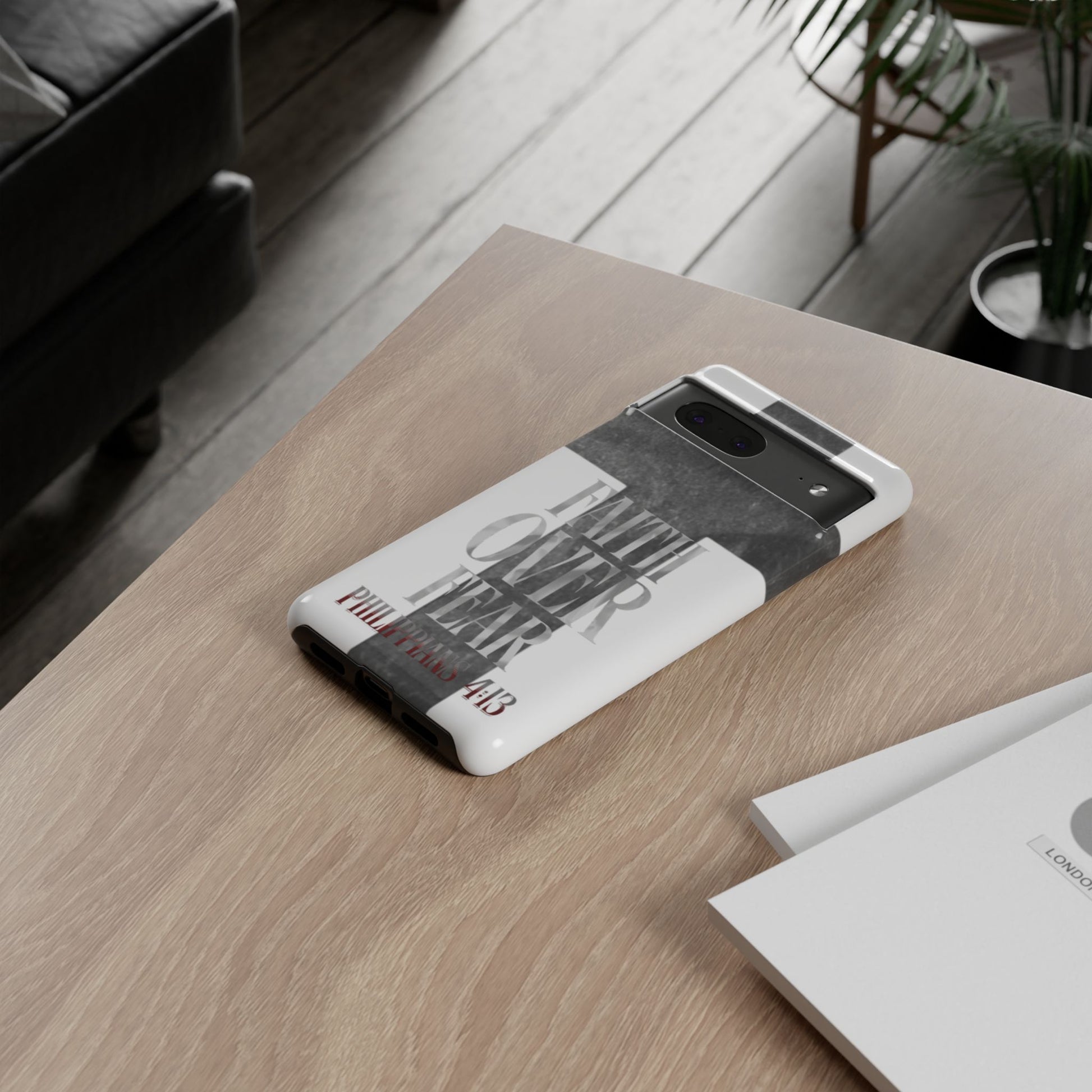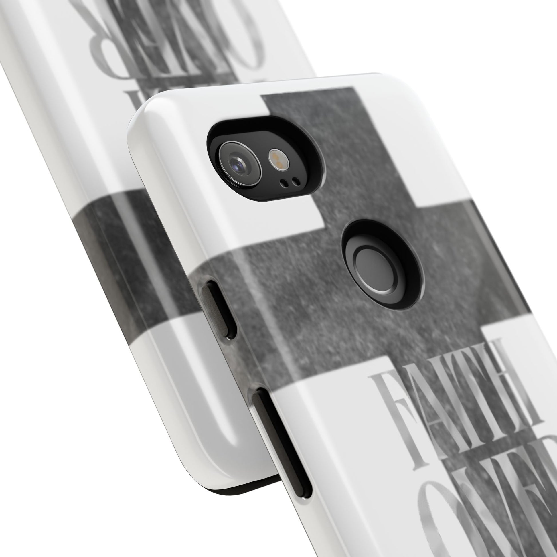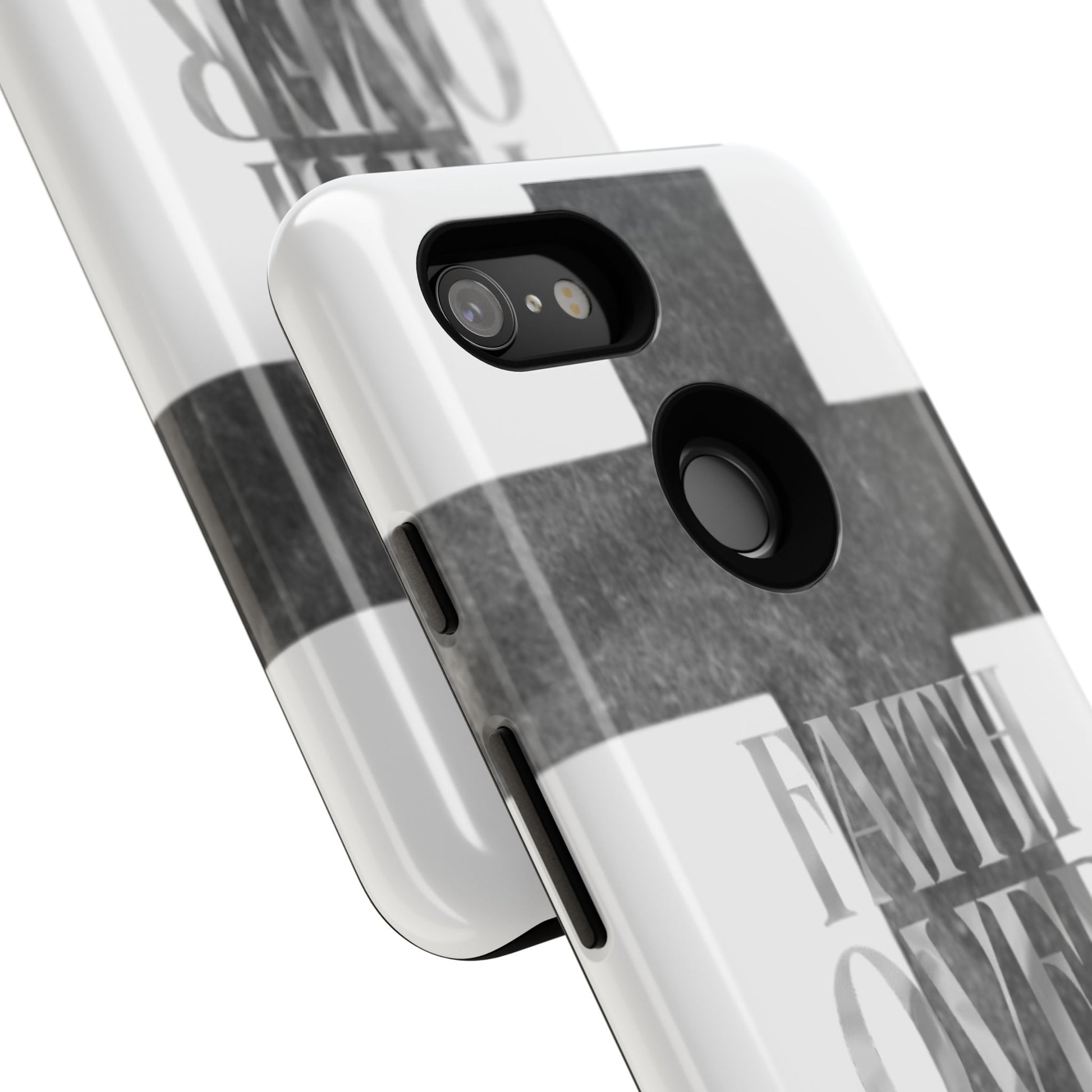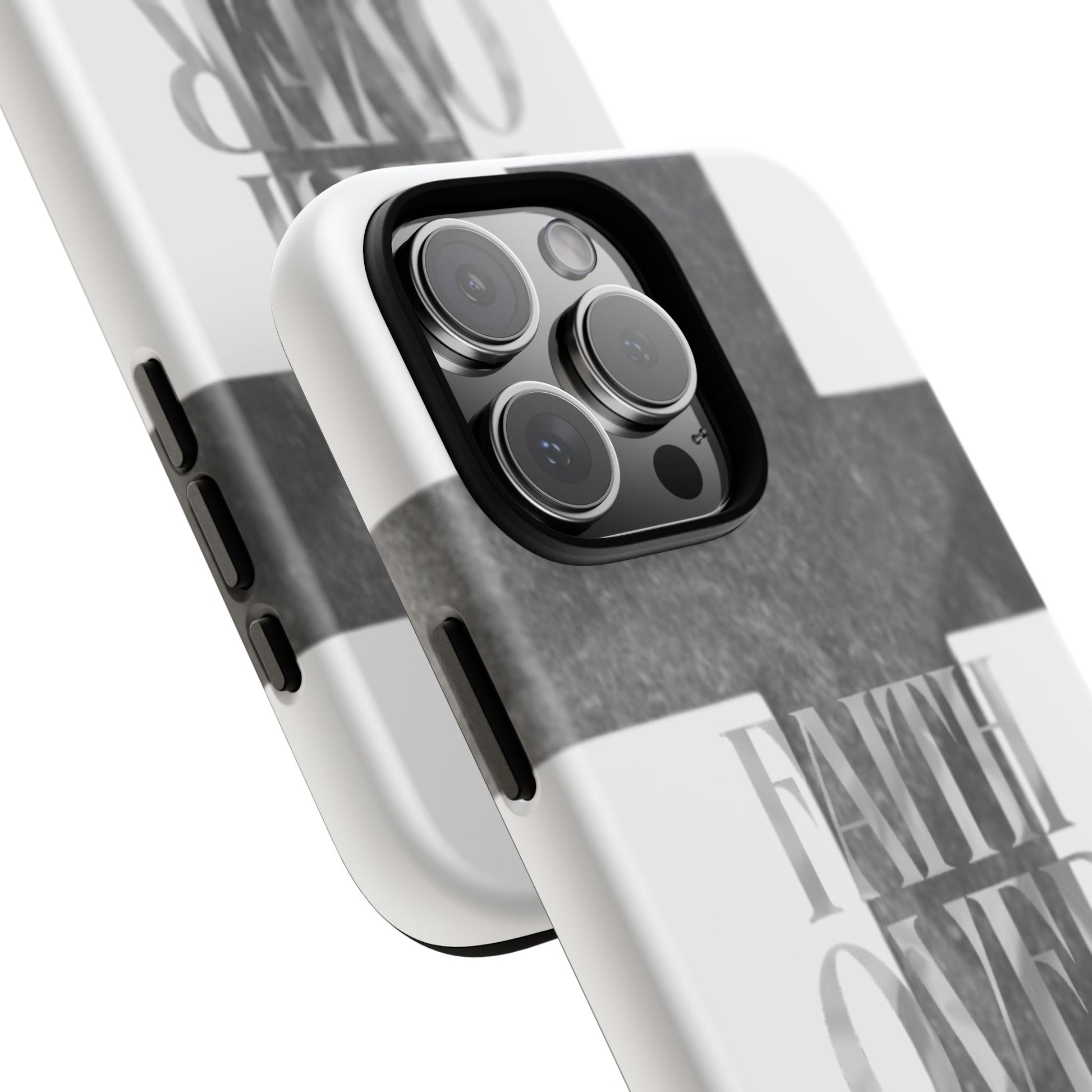This Phone Case with the design Faith Over Fear on a white background exudes positivity and resilience. Perfect for individuals who value faith and strength in overcoming challenges. Ideal for Christians and spiritual individuals. Relevant for gifts on occasions like birthdays, Christmas, Easter, and as a token of support during tough times.