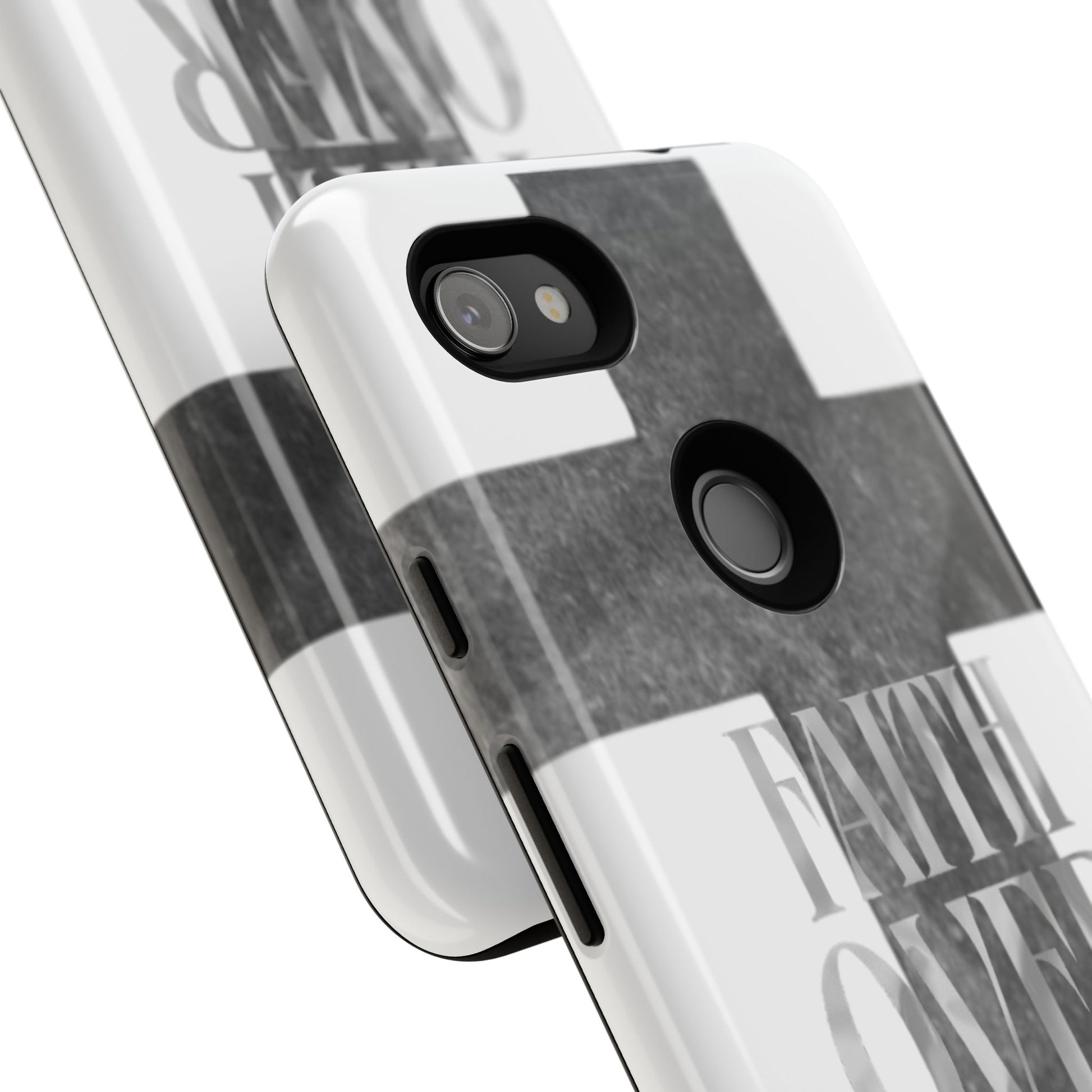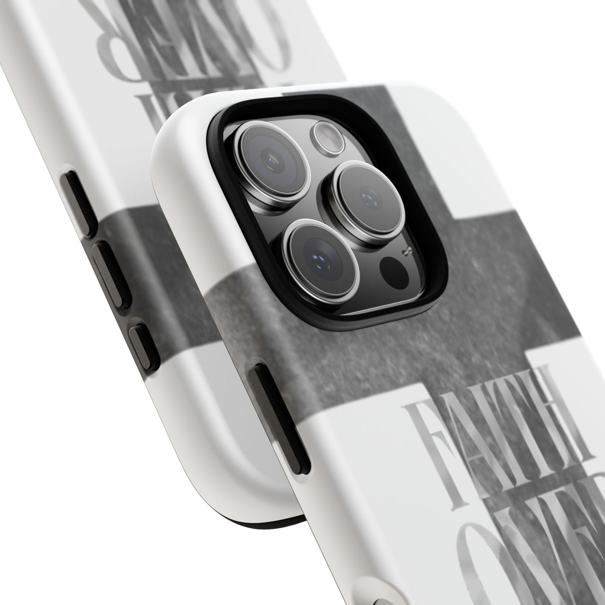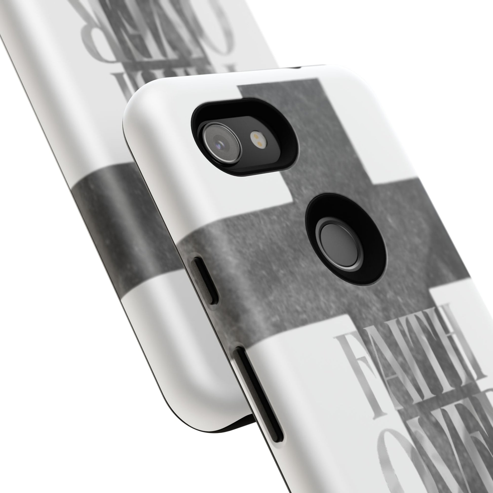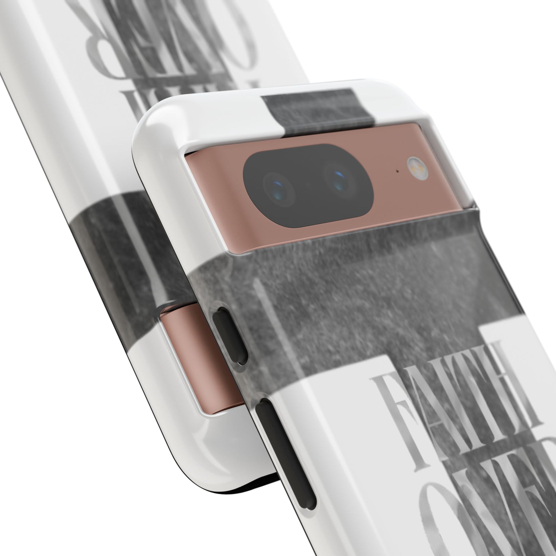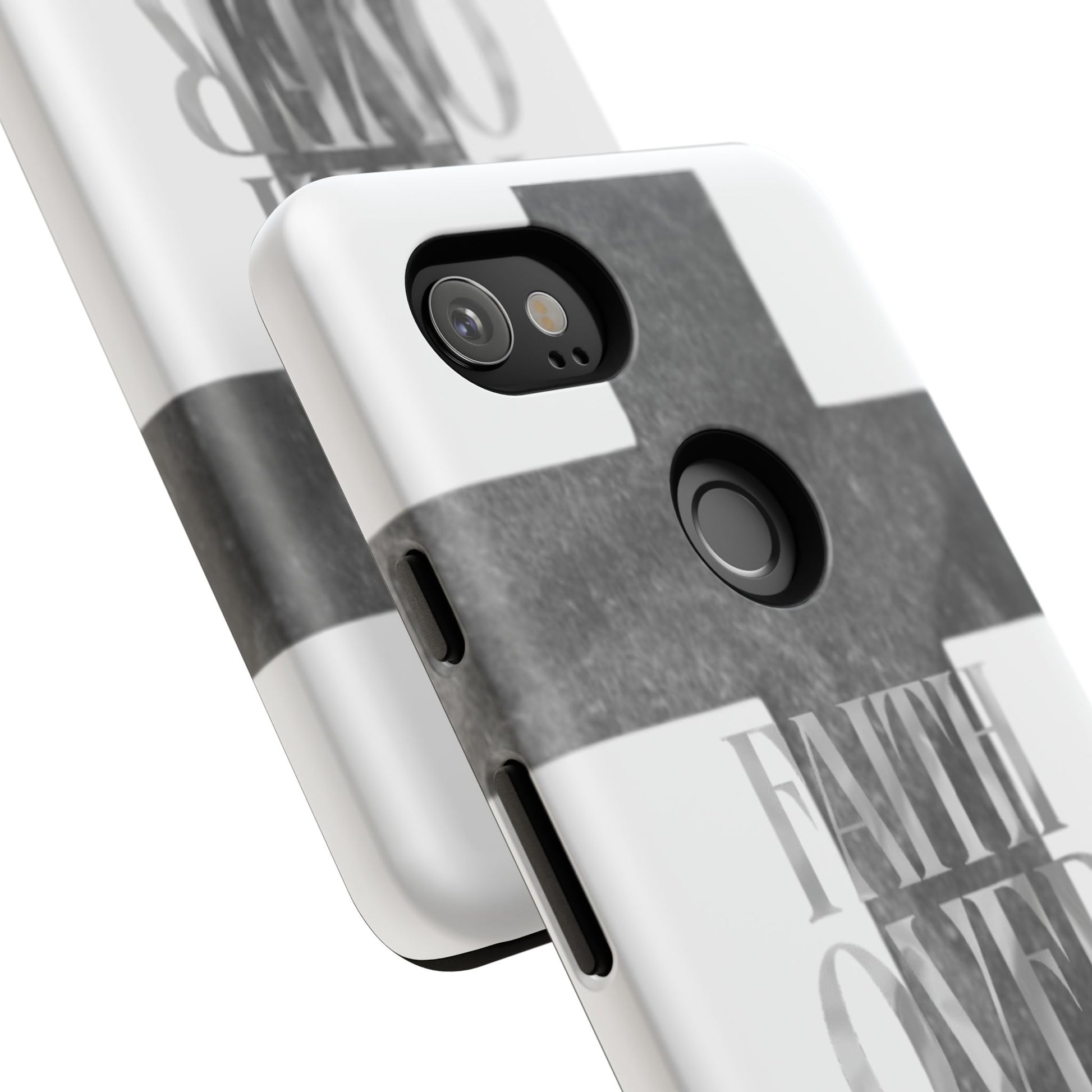 This Phone Case with the design Faith Over Fear on a white background exudes positivity and resilience. Perfect for individuals who value faith and strength in overcoming challenges. Ideal for Christians and spiritual individuals. Relevant for gifts on occasions like birthdays, Christmas, Easter, and as a token of support during tough times.