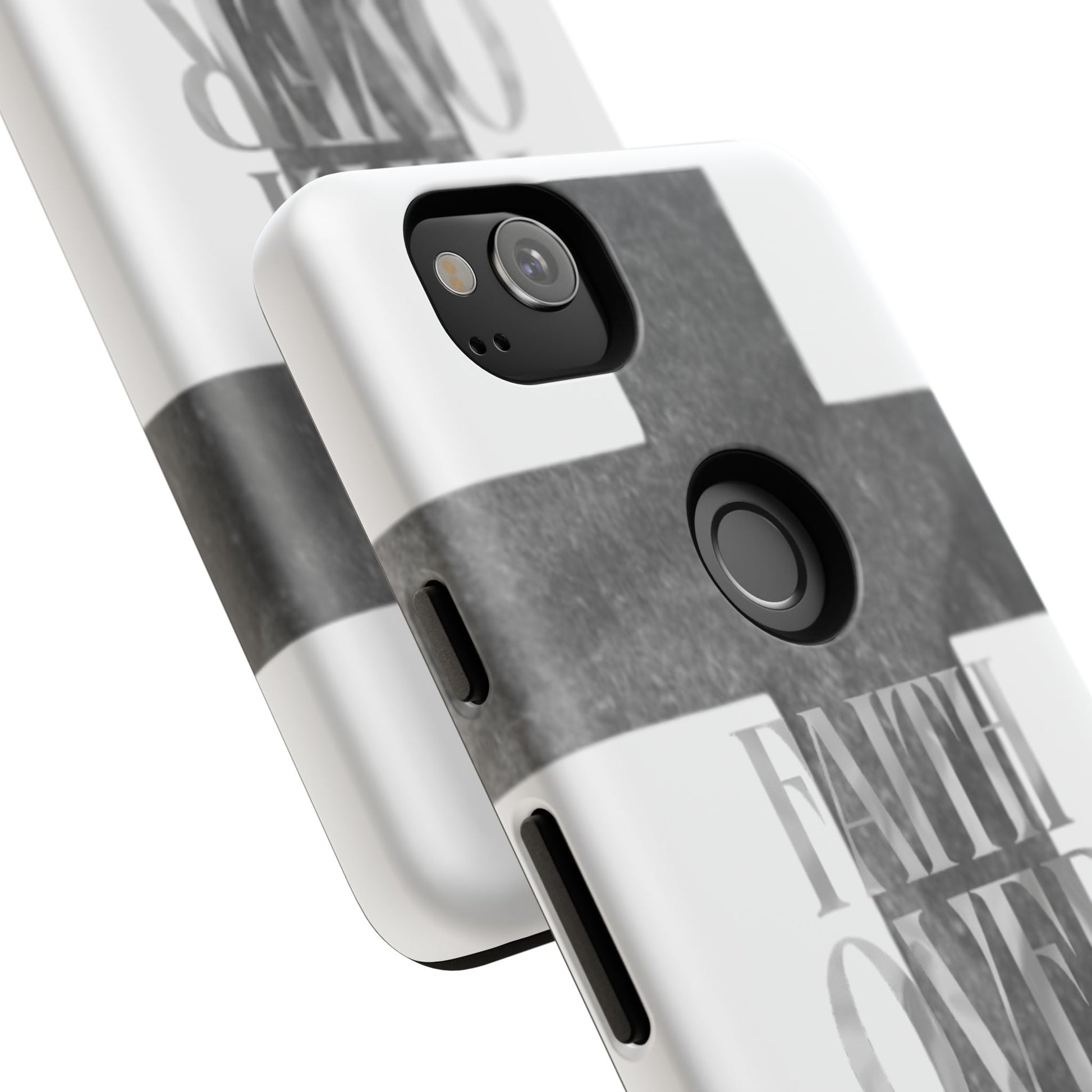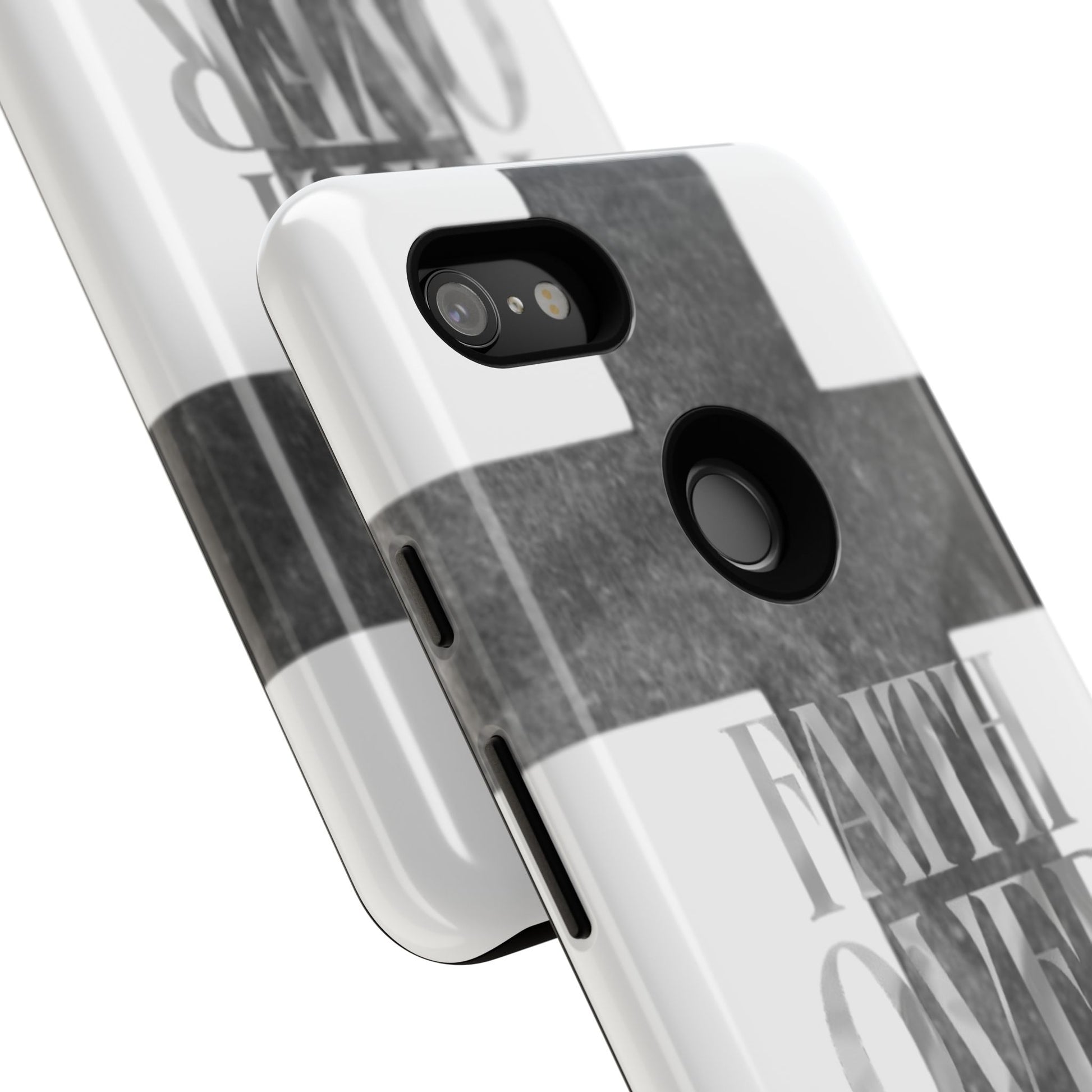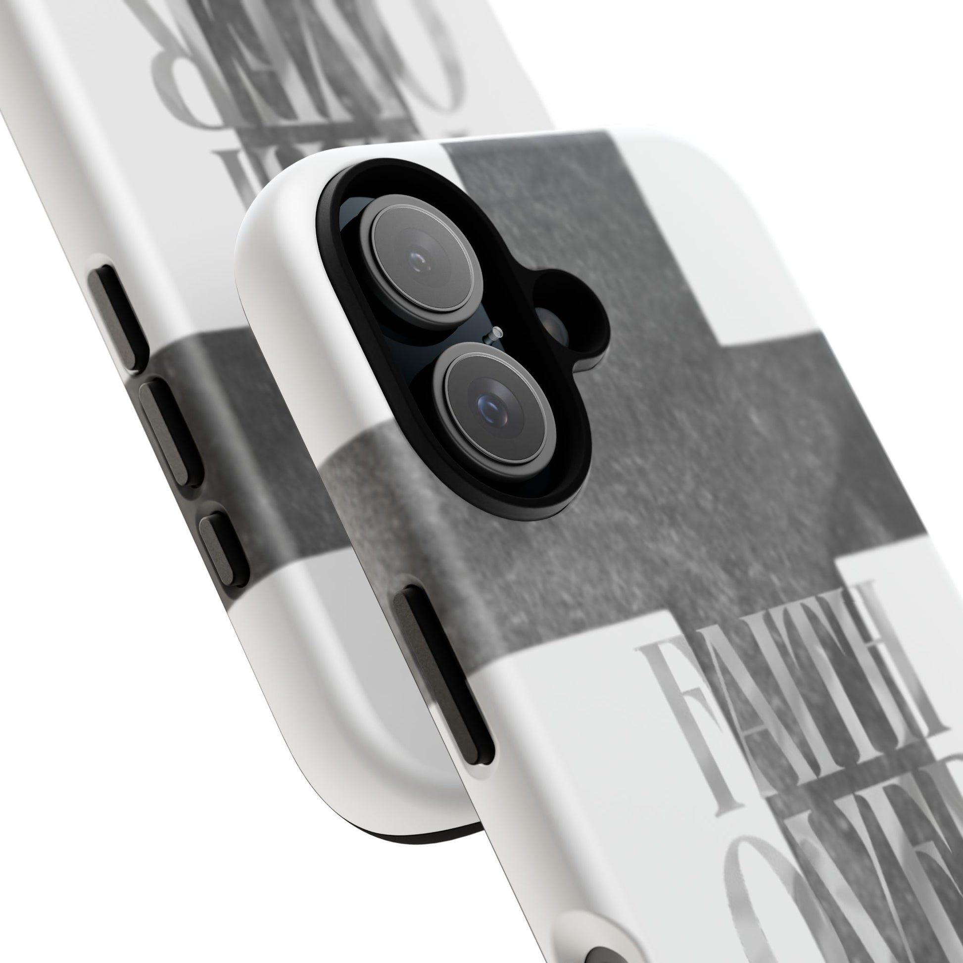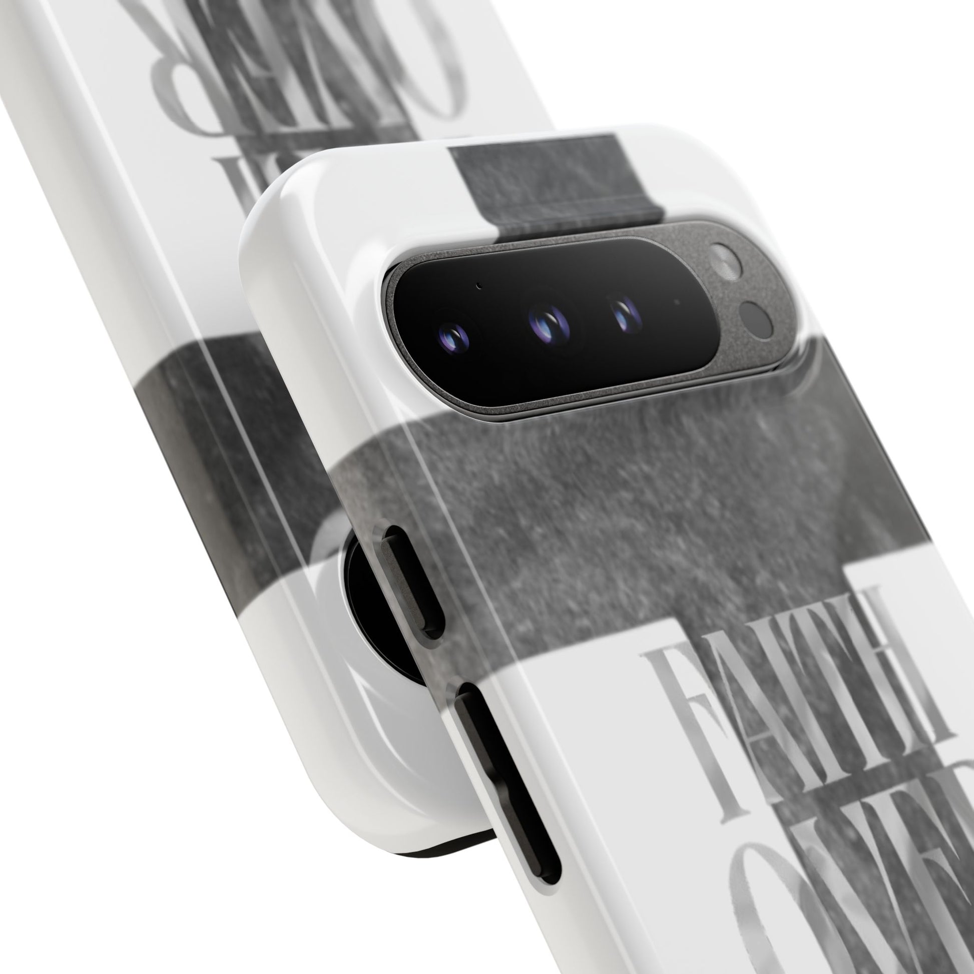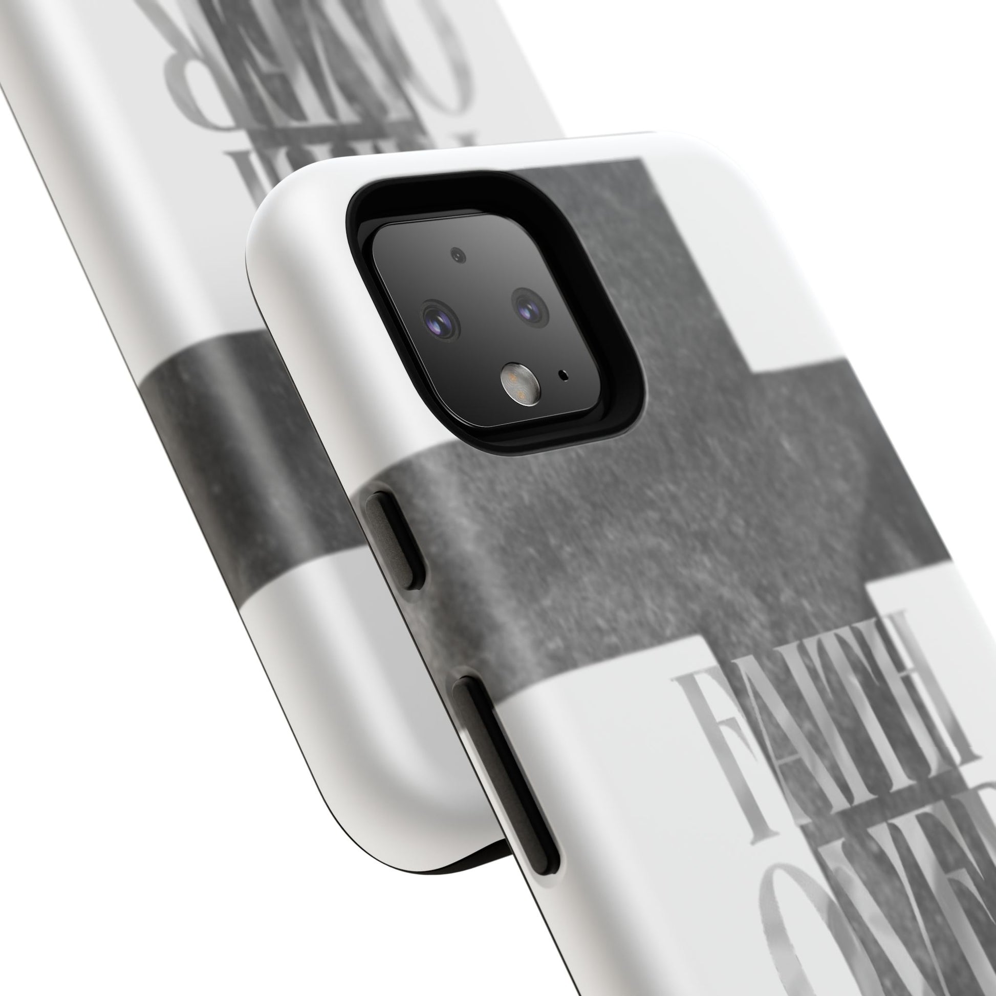 This Phone Case with the design Faith Over Fear on a white background exudes positivity and resilience. Perfect for individuals who value faith and strength in overcoming challenges. Ideal for Christians and spiritual individuals. Relevant for gifts on occasions like birthdays, Christmas, Easter, and as a token of support during tough times.