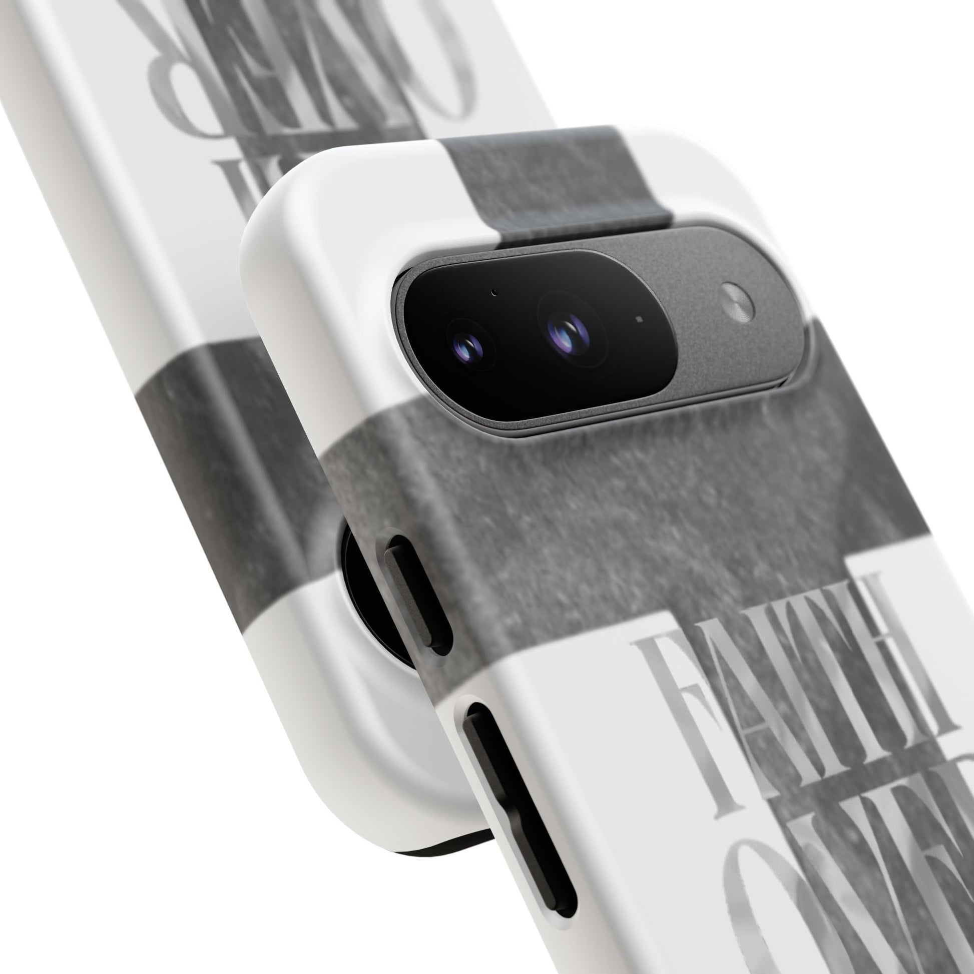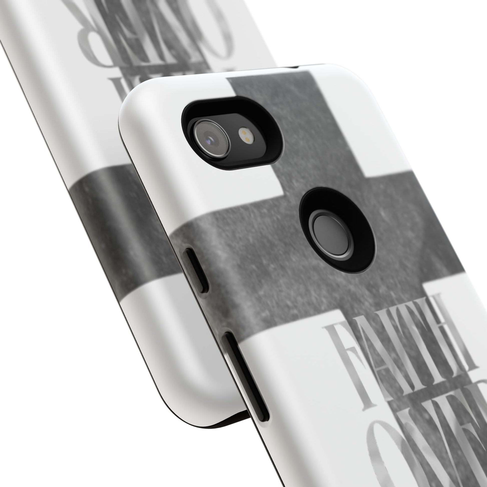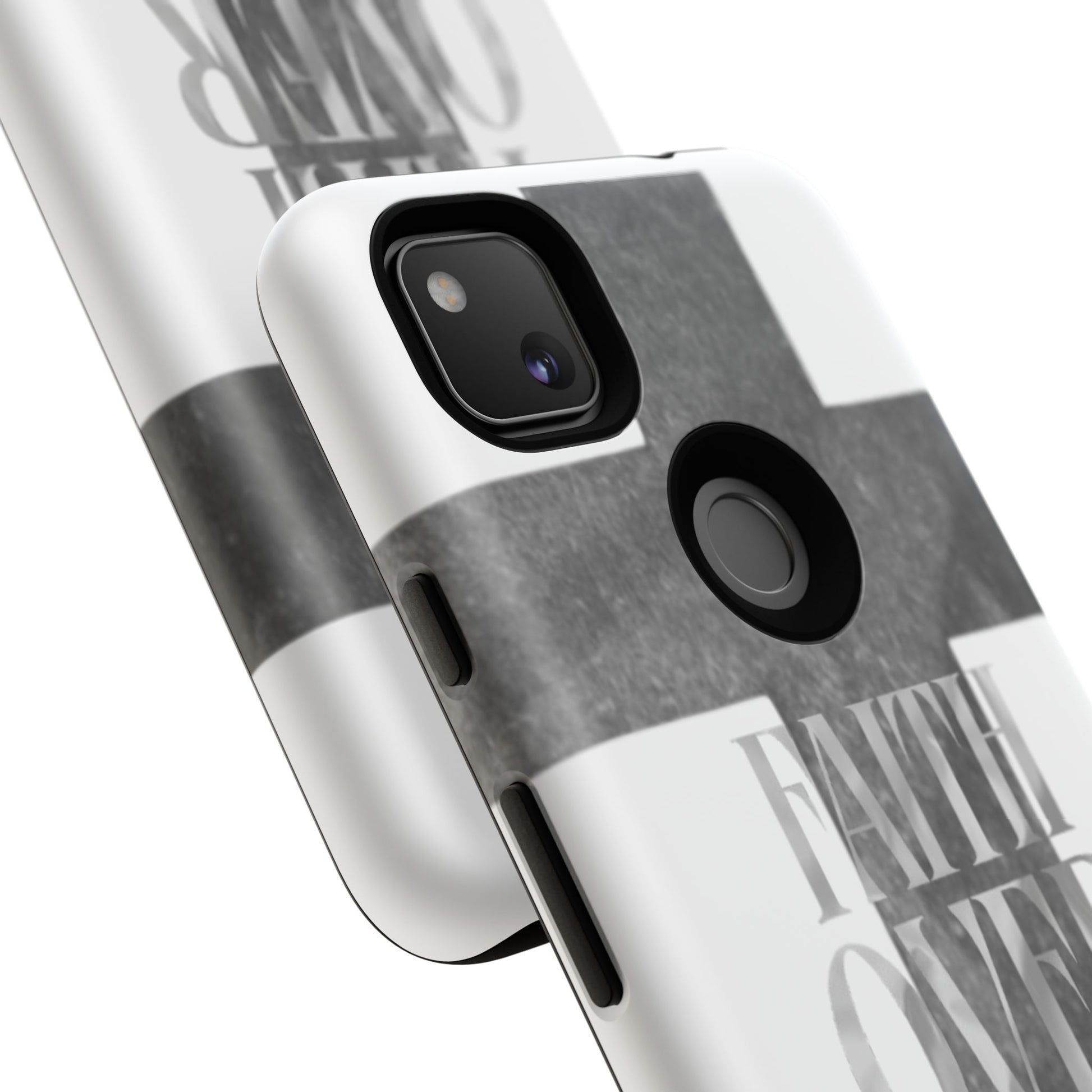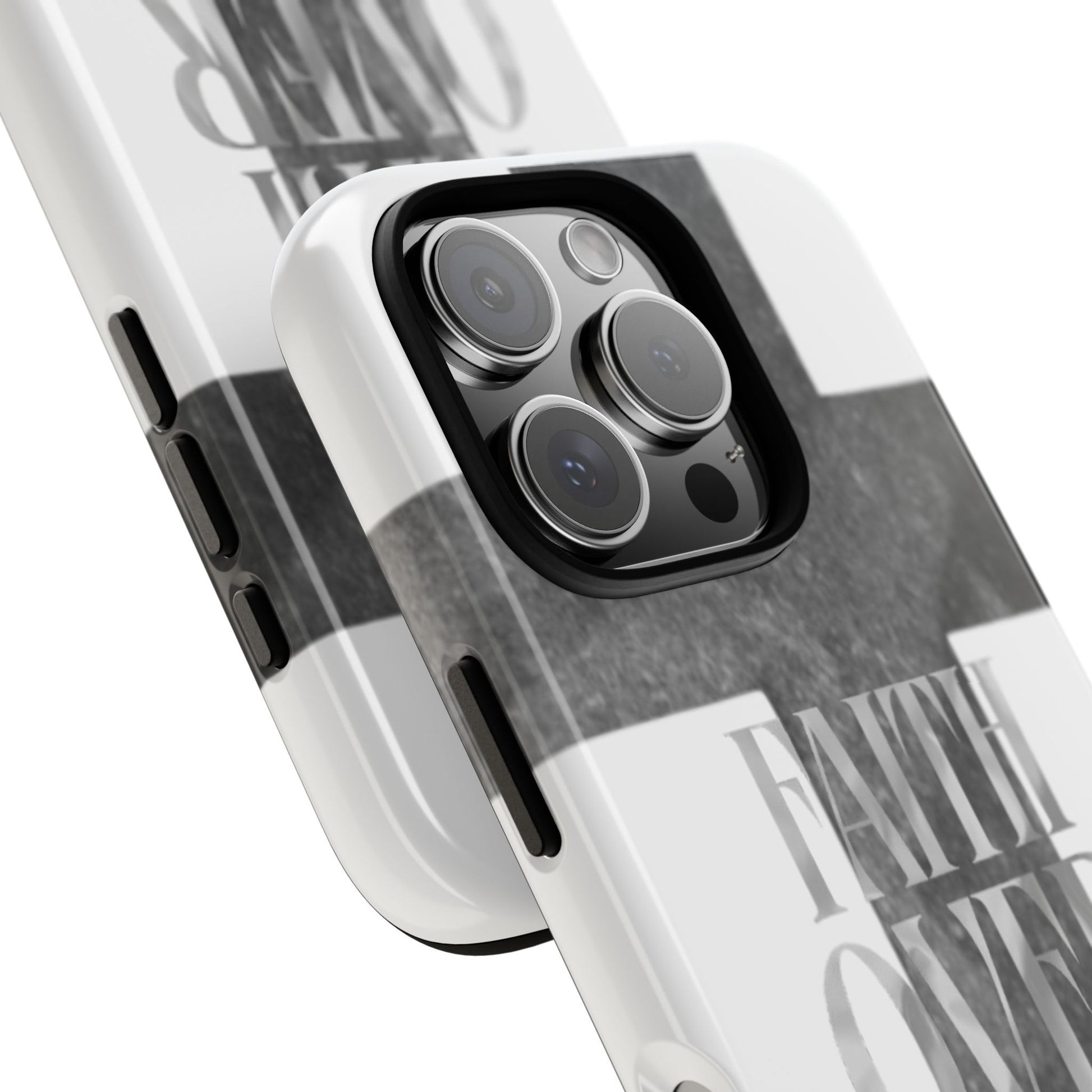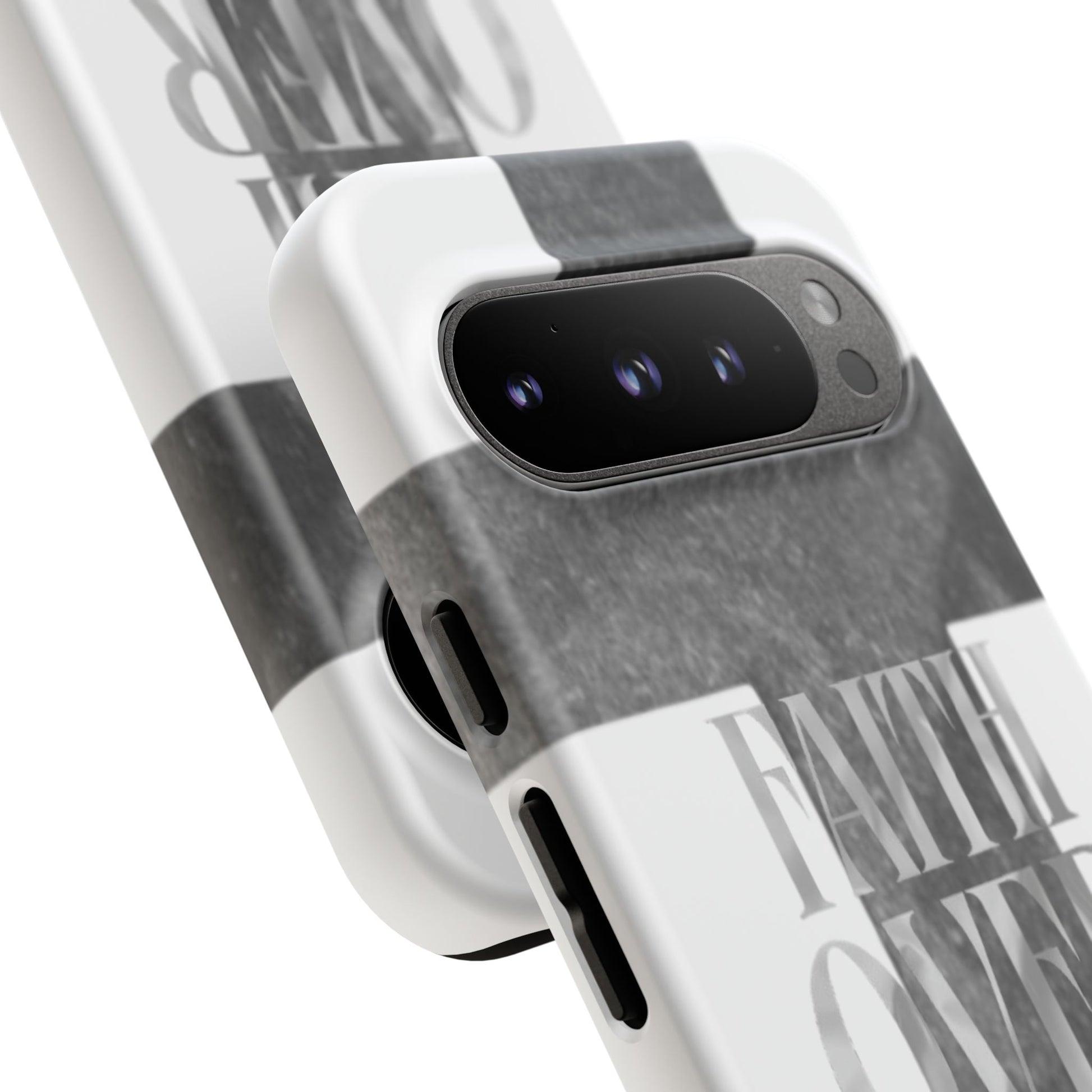 This Phone Case with the design Faith Over Fear on a white background exudes positivity and resilience. Perfect for individuals who value faith and strength in overcoming challenges. Ideal for Christians and spiritual individuals. Relevant for gifts on occasions like birthdays, Christmas, Easter, and as a token of support during tough times.
