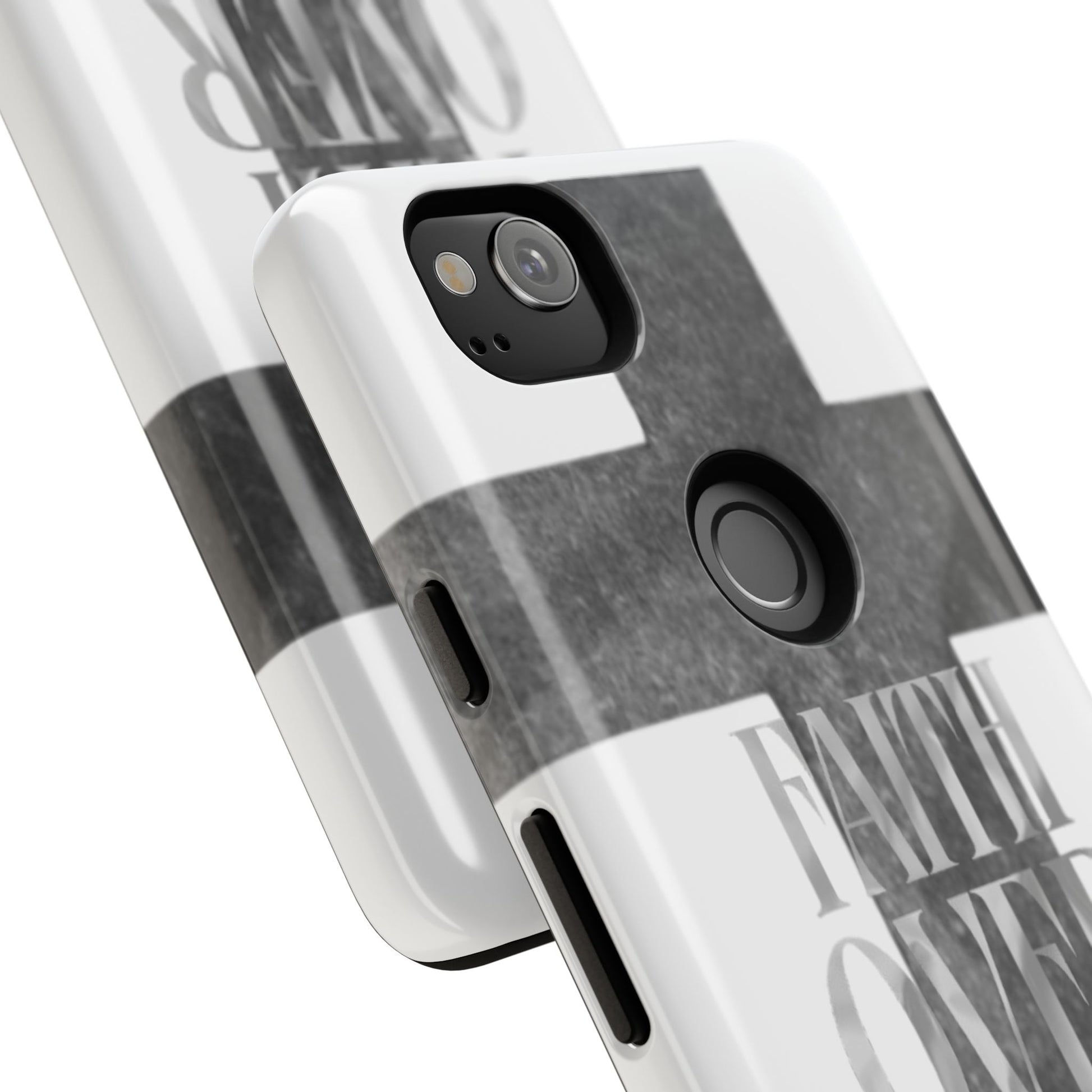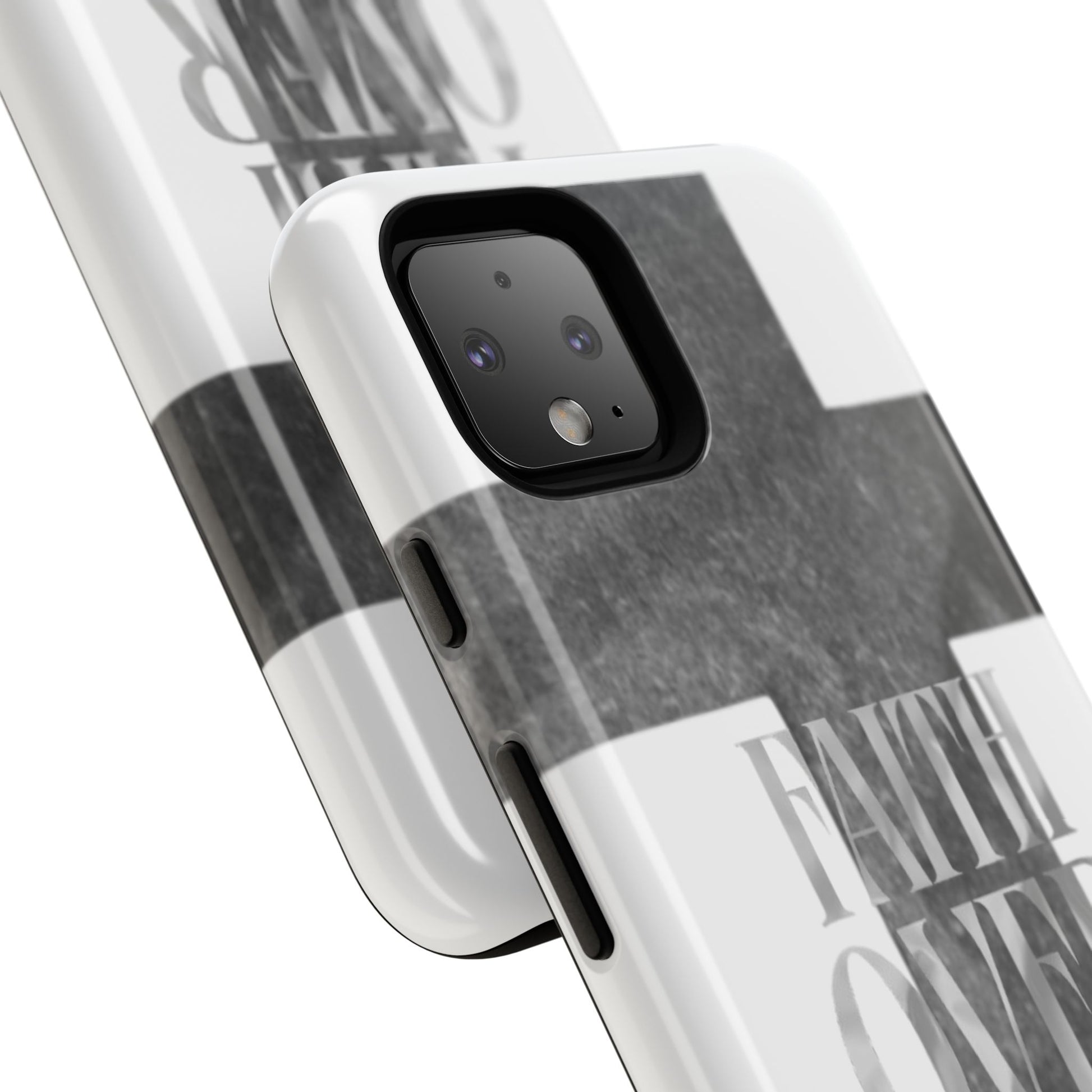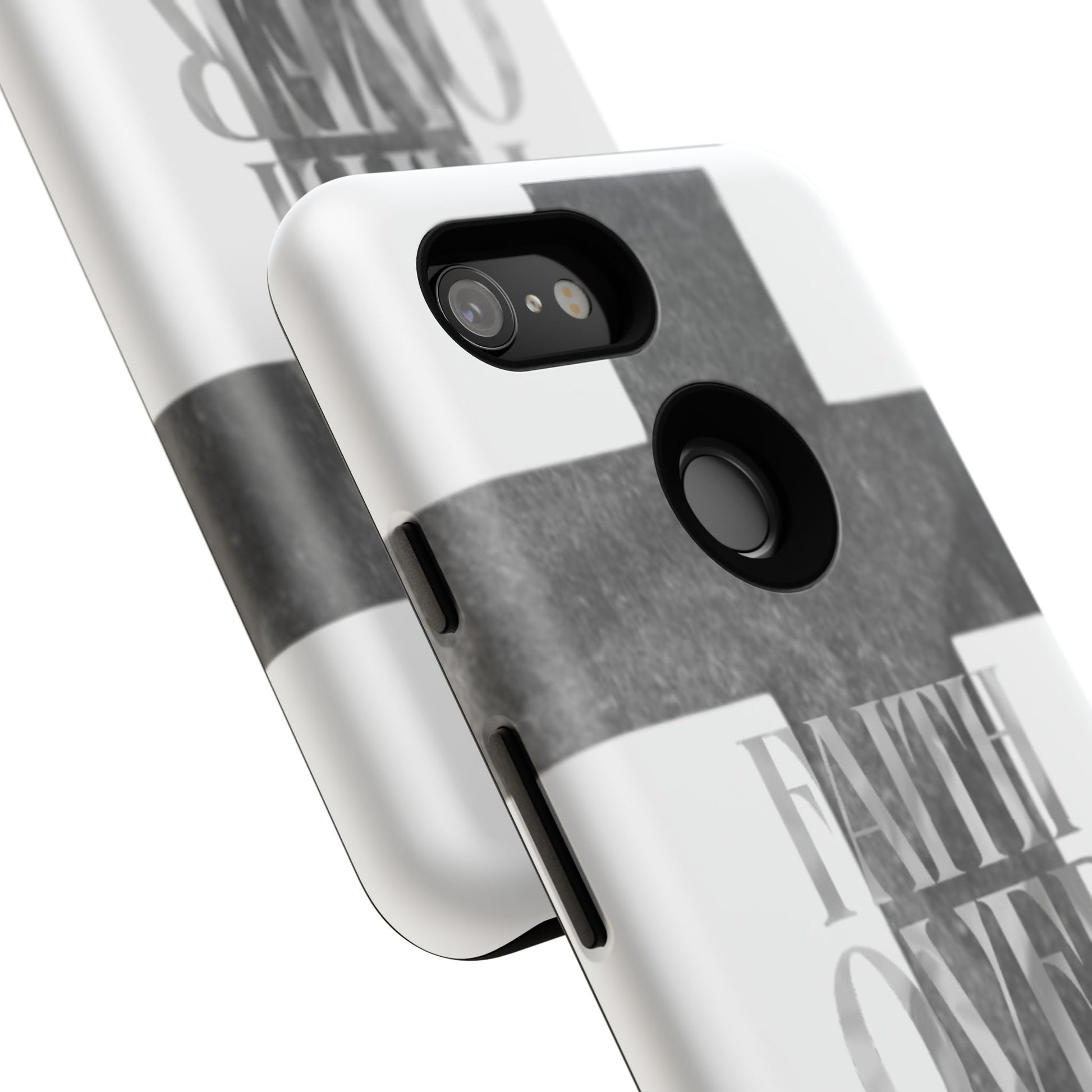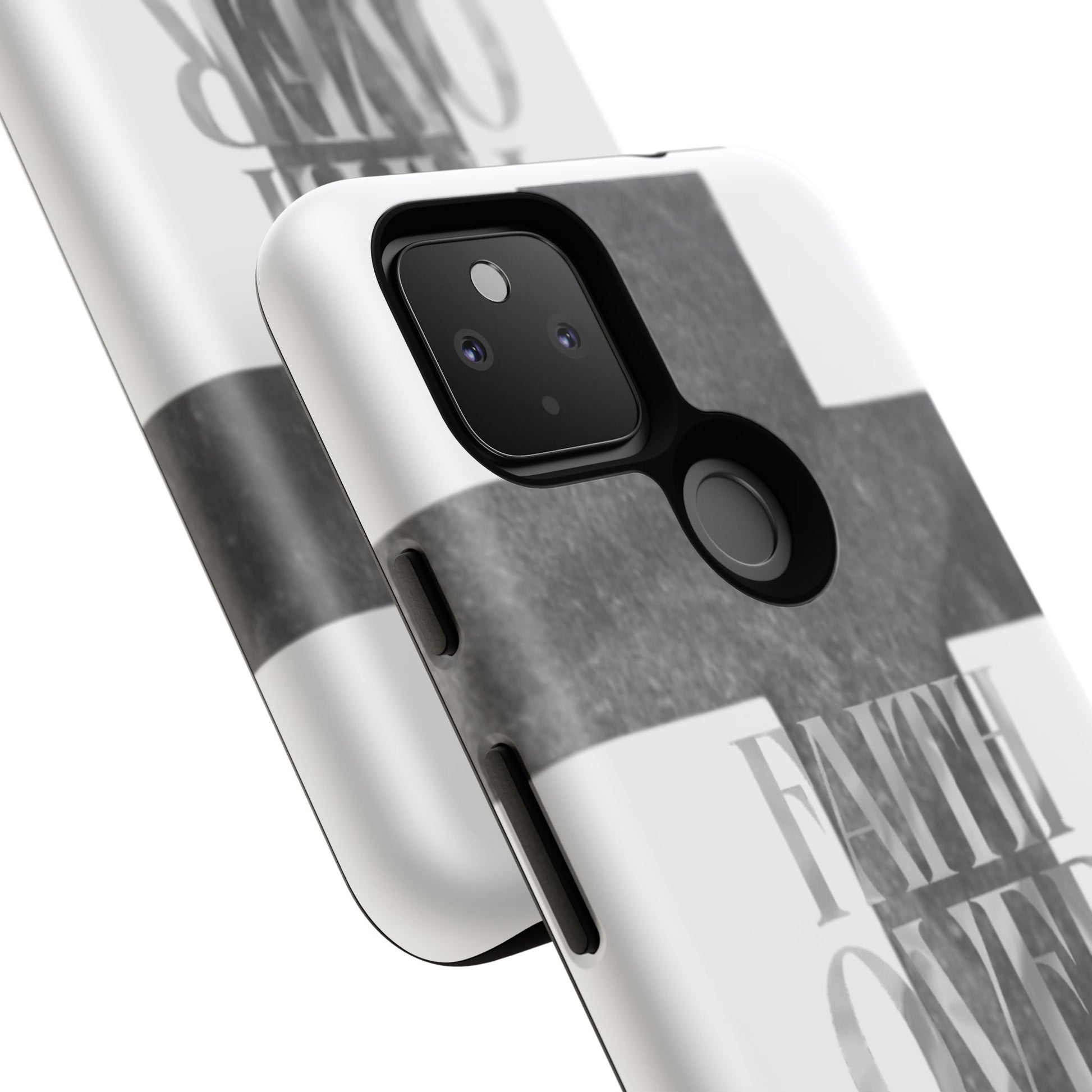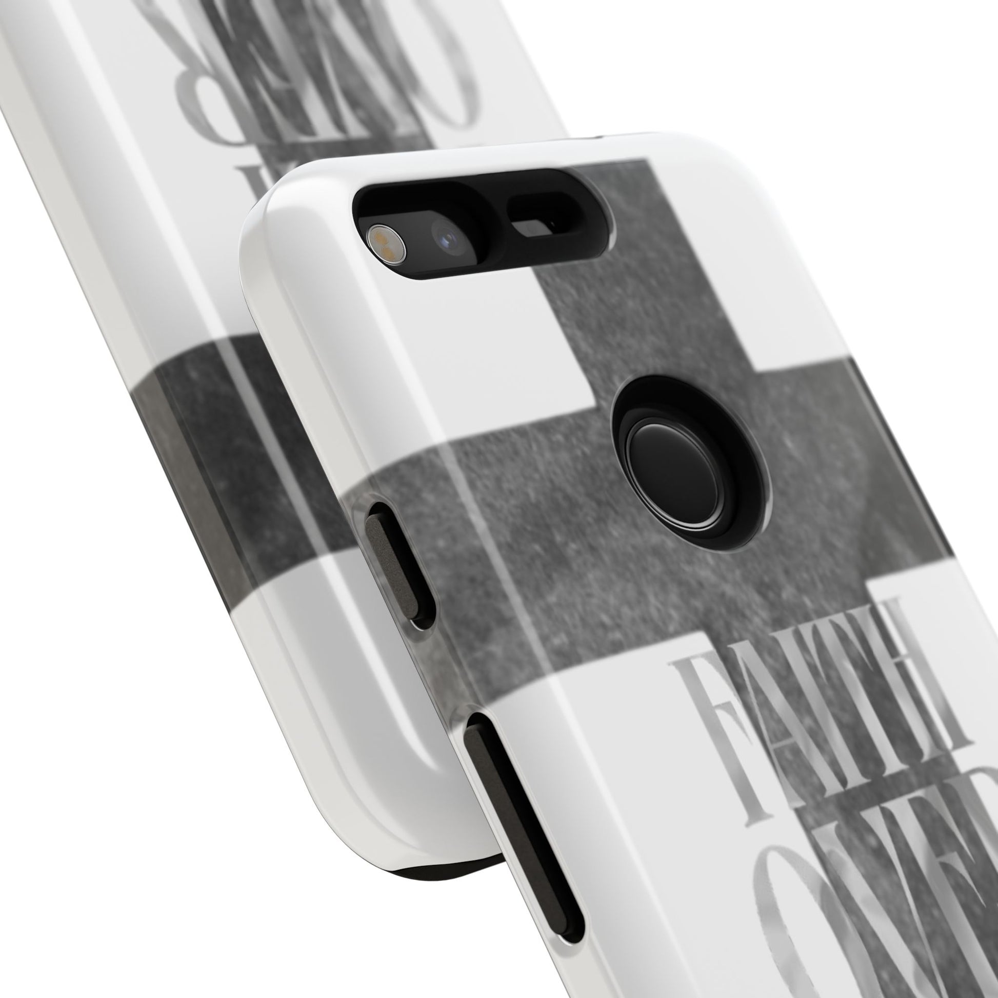 This Phone Case with the design Faith Over Fear on a white background exudes positivity and resilience. Perfect for individuals who value faith and strength in overcoming challenges. Ideal for Christians and spiritual individuals. Relevant for gifts on occasions like birthdays, Christmas, Easter, and as a token of support during tough times.