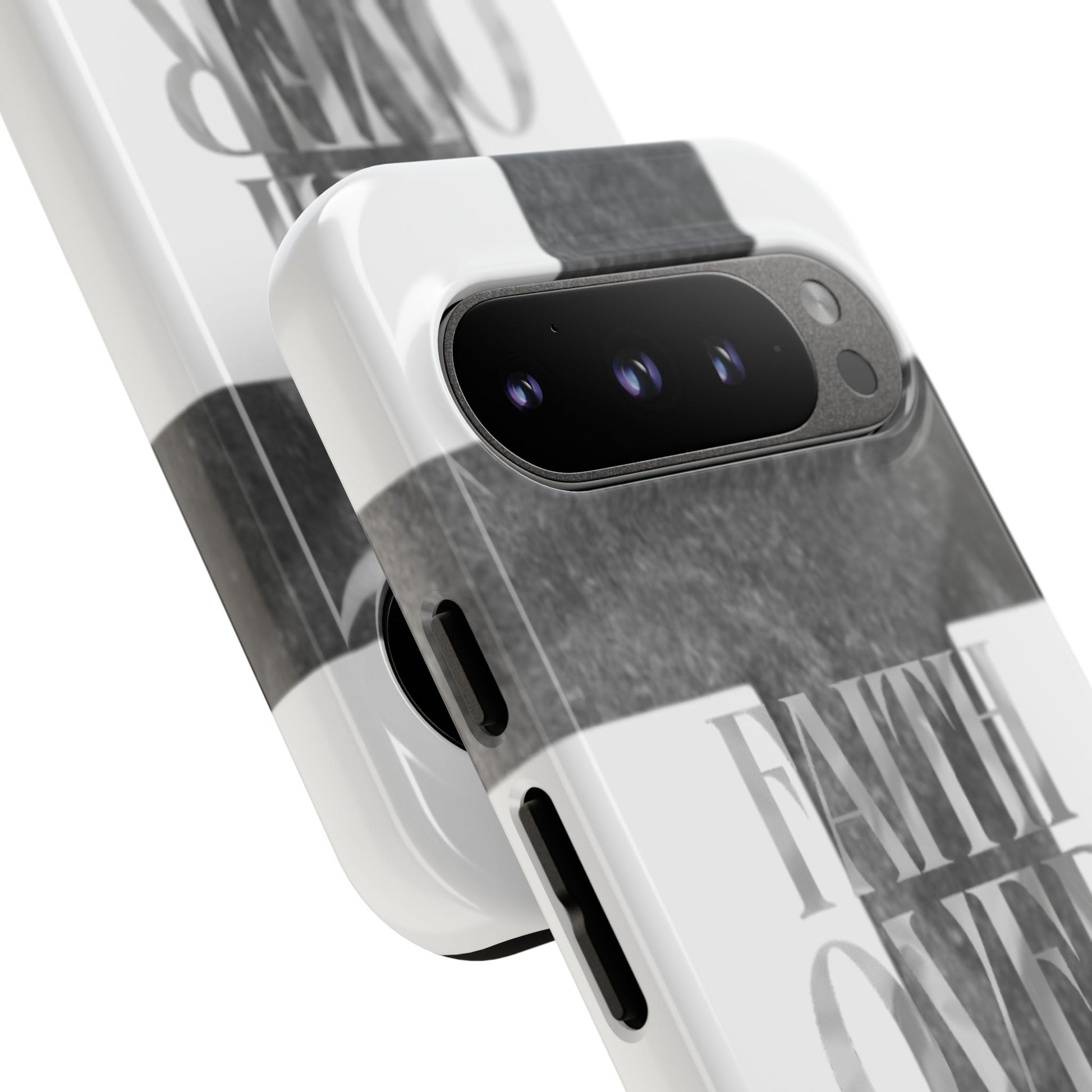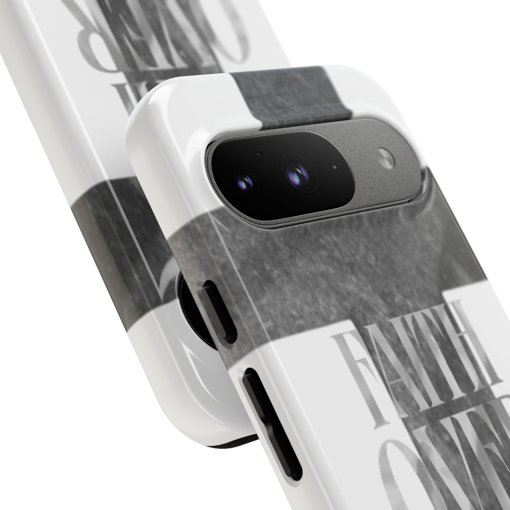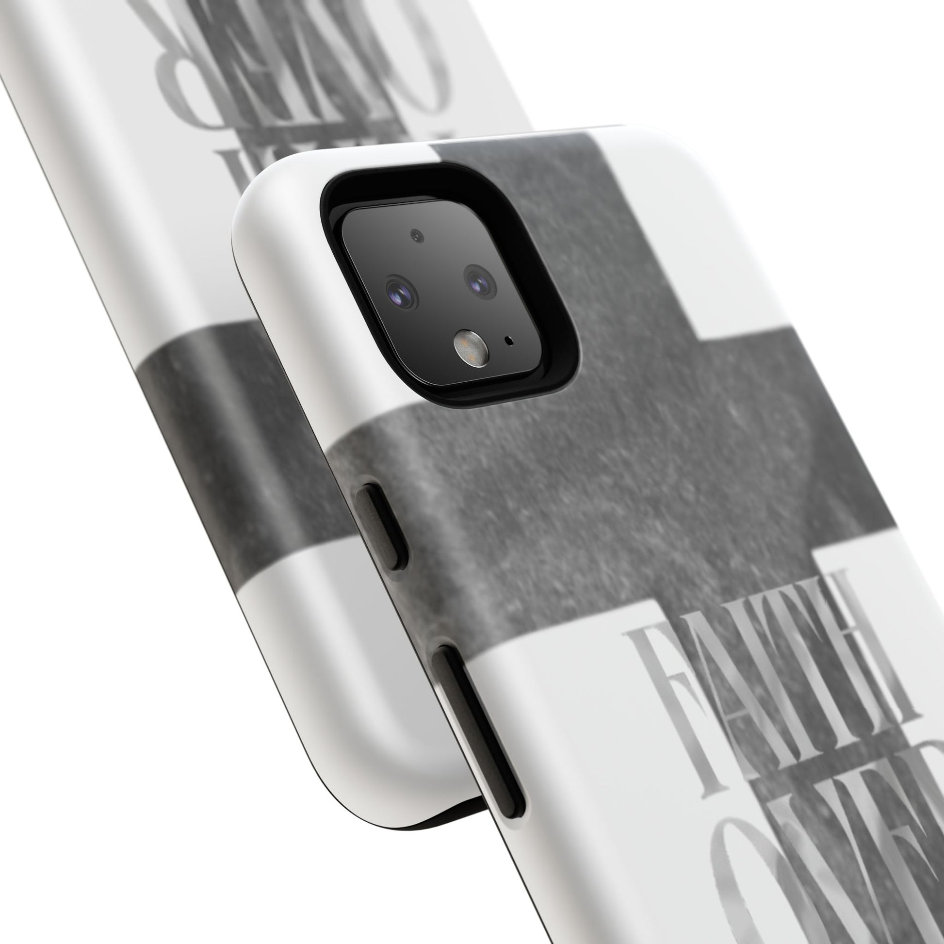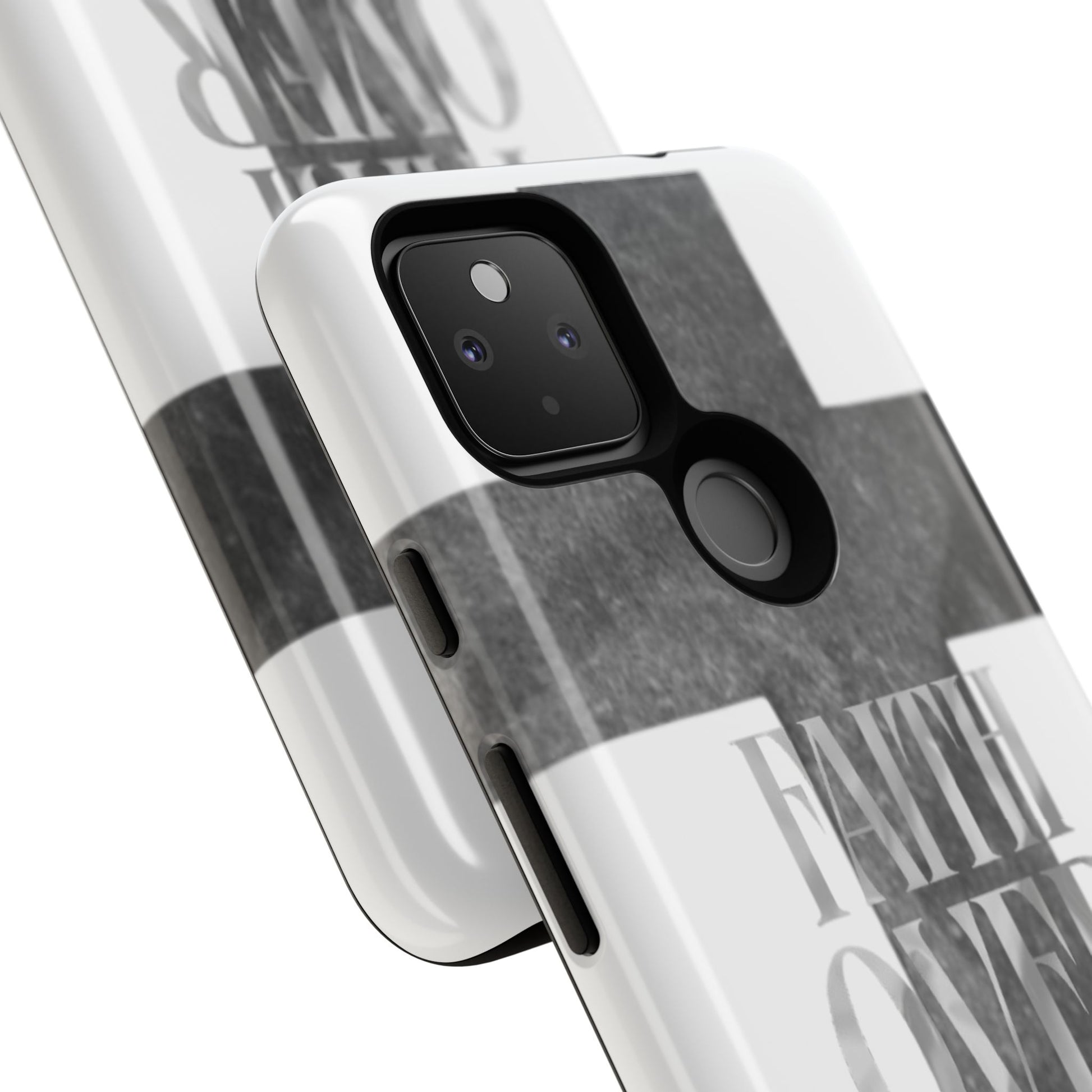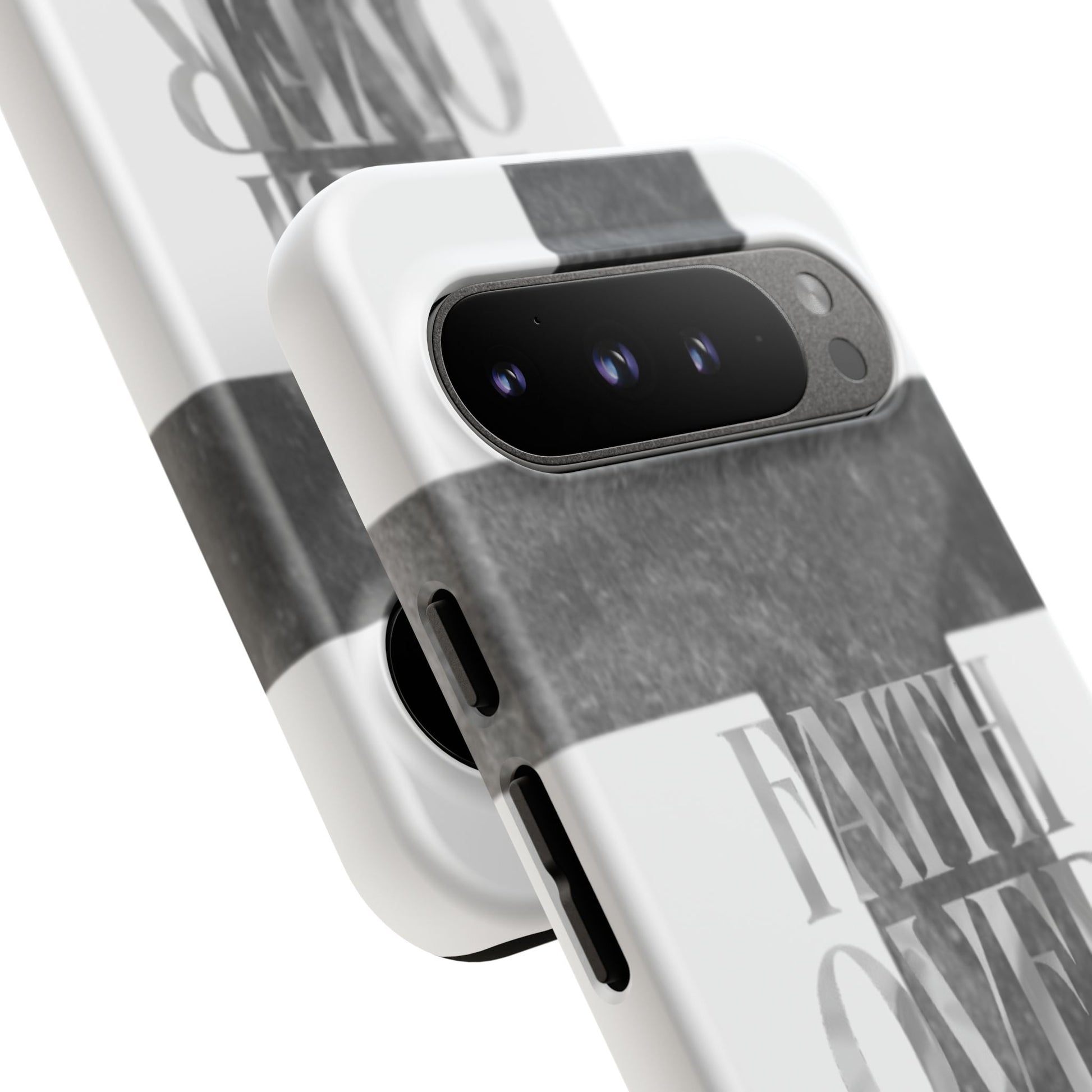 This Phone Case with the design Faith Over Fear on a white background exudes positivity and resilience. Perfect for individuals who value faith and strength in overcoming challenges. Ideal for Christians and spiritual individuals. Relevant for gifts on occasions like birthdays, Christmas, Easter, and as a token of support during tough times.